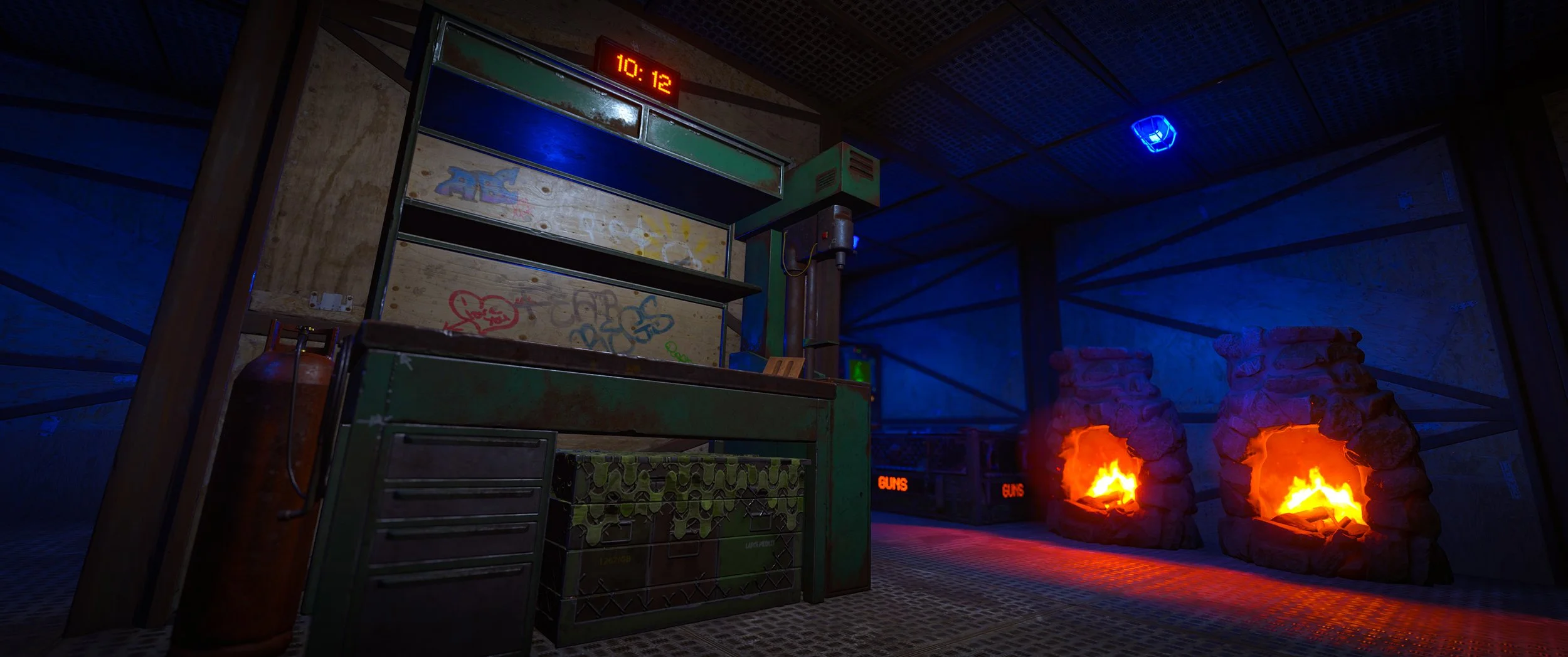 Work continues on the industrial-themed DLC, with new deployables and assets coming online. This week includes progress on industrial storage, a new industrial garage door, and further updates to the industrial auto turret with improved models, textures, and LODs.